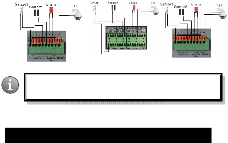 Connect the PTZ control jacks to the corresponding RS485 A and B interfaces on the