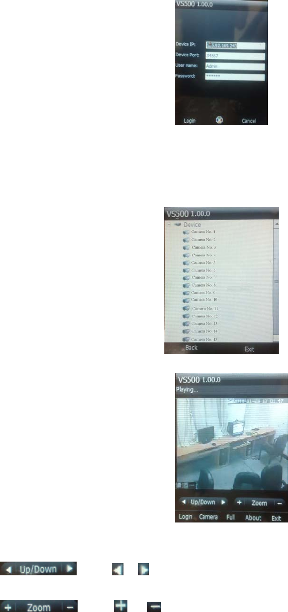 In the ensuing screen, input the user name (default is Admin), password, device port (TCP