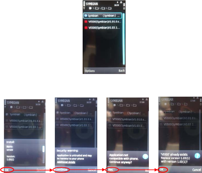 (1) Copy “VS500(Symbian)V1.03.1.R.101203.sisx” to your mobile from the installation