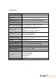 1.2 Specification Standard IEEE 802.11G/B Frequency Band 2.400GHz ~ 2.484GHz Radio Type IEEE 802.11g: OFDM (64-QAM, 16-QAM, QPSK, BPSK) IEEE 802.11b: DSSS (CCK/DQPSK/DBPSK) Data Rate (Wireless) 802.11g: 54 / 48 / 36 / 24 / 18 / 12 / 9 & 6Mbps 802.11b: 11 / 5.5 / 2 & 1 Mbps with auto-rate fall back Access Protocol CSMA/CA Number of Operation Channel Operation Mode Security 2.412~2.462GHz (Canada, FCC) / 11 Channels 2.412~2.484GHz (Japan, TELEC) / 14 Channels 2.412~2.