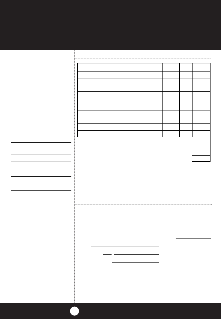 Item # Description Cost Ea. Qty. Amount