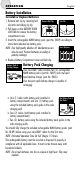OPERATION English Battery Installation To Install or Replace Batteries: 1. Remove belt clip by releasing belt Remove Belt Clip Lock Tab clip latch and sliding clip Up. 2. Pull down on the BATTERY DOOR LOCK TAB to remove the battery compartment cover. 3. Insert the rechargeable NiMH battery pack (part No. FA-BP) according to instructions indicated on battery pack. Insert Batteries NOTE: Four high-quality alkaline (4) AAA batteries can also be used. Position batteries according to polarity markings. 4.