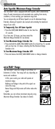 OPERATION English Auto Squelch/Maximum Range Extender Your microTALK® radio is equipped with Auto Squelch, which automatically shuts off weak transmissions and unwanted noise resulting from terrain, conditions, or from reaching your maximum range limit. You can temporarily turn Off Auto Squelch or turn On Maximum Range Extender, allowing all signals to be received and extending the maximum range of your radio. To Temporarily Turn Off Auto Squelch: 1.
