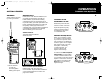 45WX.MANUAL.9/97.qx 9/26/97 2:38 PM Page 9 OPERATION 8 TURNING ON/SQUELCH GETTING STARTED ANTENNA BATTERY PACK Attach antenna securely by turning clockwise. Insert (6) new “AA” Alkaline batteries (not provided) into the battery cartridge. To install batteries, (1) remove the battery cartridge from the unit. (2) Lift the tab on top of the battery pack and separate the two halves. (3) Install the batteries according to the polarity markings provided on the cartridge.