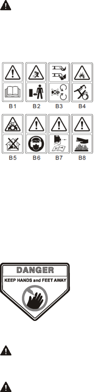 Figure B: Safety Label Found On Lawn Mower: KEEP HANDS AND FEET AWAY.
