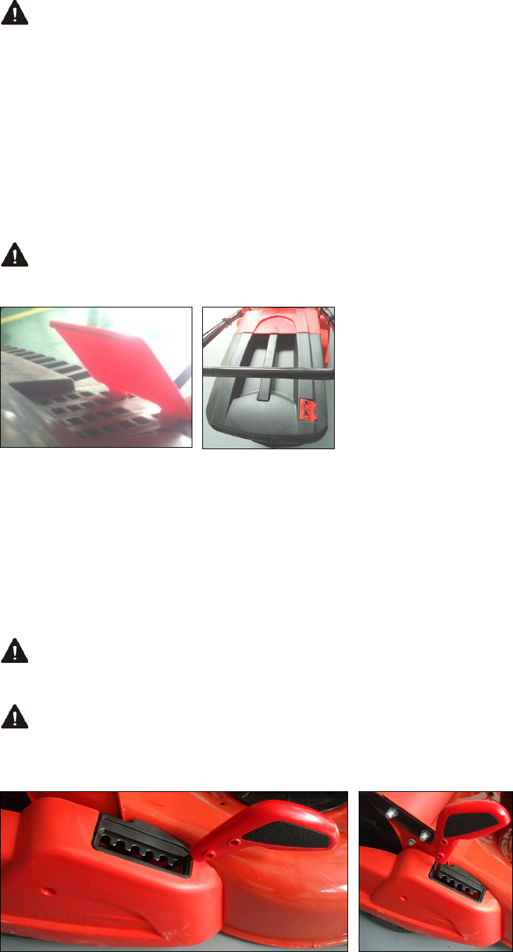 Keep the grass catcher indicator vents clear at all times, to ensure that it functions correctly.