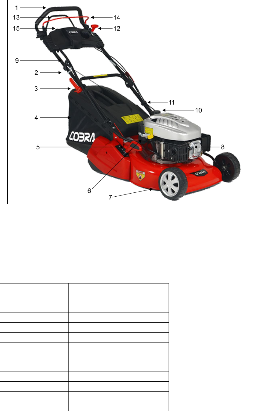 1. Upper handle 2. Rope Guide 3. Locking lever 4. Grass catcher