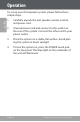 Operation To set up your iPod speaker system, please follow these simple steps: English 1. Carefully unpack the unit speaker, remote control, and power cord. 2. Unwind power cord and connect to the socket on the rear of the system. Connect the other end to your power outlet. 3. Place the system on a stable, flat surface. Avoid placing the system in direct sunlight. 4. To turn the system on, press the POWER touch pad on the top panel. The blue light on the underside of the unit will illuminate.