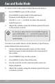 Aux and Radio Mode To listen to the radio, please follow these instructions: English 1. Press POWER to turn on the system. 2. Press MODE to select AM or FM radio band. Frequency will display on screen. 3. Use the [ + ] or [ – ] controls to select the desired radio frequency. 4. Adjust the volume using the Volume pad on the unit or the remote control. To scan up or down for the next available frequency, press and hold the [ + ] / [ – ] controls for approximately one second.