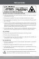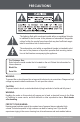 PRECAUTIONS The lightning flash with arrowhead symbol within an equilateral triangle is intended to alert the user to the presence of uninsulated “dangerous voltage” within the product’s enclosure that may be of sufficient magnitude to constitute a risk of electric shock. The exclamation point within an equilateral triangle is intended to alert the user to the presence of important operation and servicing instructions in the literature accompanying the appliance.