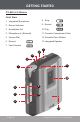 GETTING STARTED CX-R60 at a Glance Front View 1. Integrated Microphone 8. Stop 2. Record Indicator 9. Record 3. Headphone Out 10. Play 4. Microphone In (External) 11. Cassette Compartment Door 5. Volume Dial 12. Cassette Door Window 6. Rewind 13. Integrated Speaker 7.