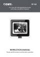 PACKAGE CONTENTS Please make sure that the items shown below are included in the package. Should an item be missing, please contact the local retailer from which you purchased this product. 1 2 3 4 5 6 MUTE MENU ZOOM ENTER SETUP VOL- VOL+ ANGLE DIGITAL PHOTO FRAME DP562 7 10 8 1. COBY DP-562 5. Stereo Headphones 2. USB Cable 6. AC Adapter 3. Audio/Video (AV) Cable 7. Installation CD 4. Remote Control 8.