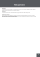 TABLE OF CONTENTS PRECAUTIONS......................................................................................2 IMPORTANT SAFETY INSTRUCTIONS....................................................4 TABLE OF CONTENTS............................................................................8 PACKAGE CONTENTS........................................................................ 10 FEATURES............................................................................................ 11 LOCATION OF CONTROLS.