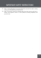 IMPORTANT SAFETY INSTRUCTIONS 1. Read Instructions: All the safety and operating instructions should be read before the product is operated. 2. Retain Instructions: The safety and operating instructions should be retained for future reference. 3. Heed Warnings: All warnings on the product and in the operating instructions should be adhered to. 4. Follow Instructions: All operating and usage instructions should be followed. 5. Cleaning: Unplug this product from the wall outlet before cleaning.