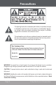 Precautions The lightning flash with arrowhead symbol within an equilateral triangle is intended to alert the user to the presence of uninsulated “dangerous voltage” within the product’s enclosure that may be of sufficient magnitude to constitute a risk of electric shock. The exclamation point within an equilateral triangle is intended to alert the user to the presence of important operation and servicing instructions in the literature accompanying the appliance.