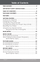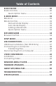 Table of Contents Precautions.................................................................. 2 Important Safety Instructions............................... 5 Table of Contents........................................................ 8 Package Contents.................................................... 10 Features........................................................................ 11 Getting Started.......................................................... 12 Controls at a Glance......................