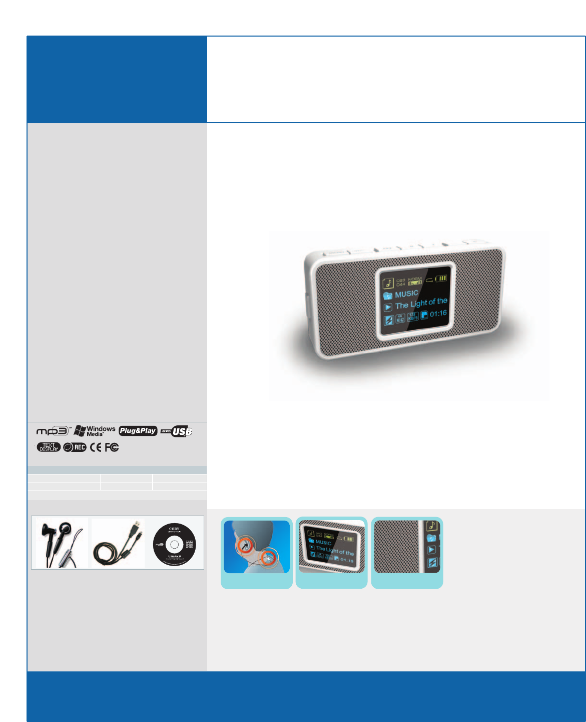 With 512MB Built-in Memory 8 Hours/120 Songs 16 Hours/240 Songs