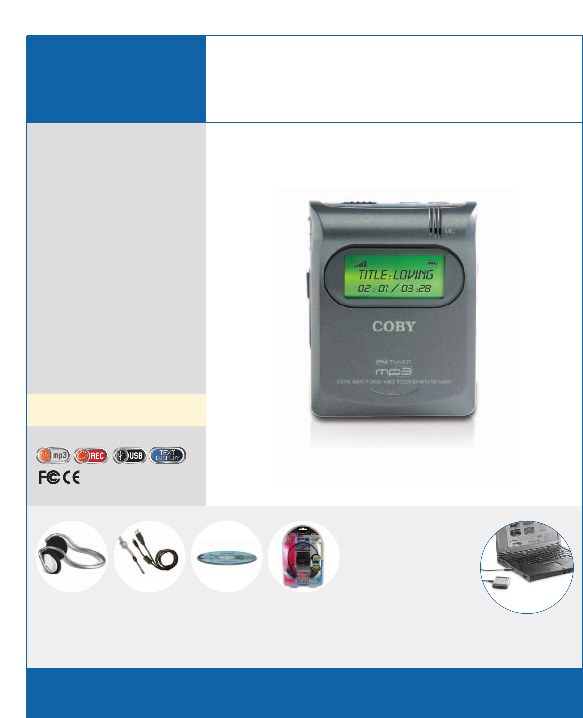 - COBY Electronics Portable MP3 Digital Player with 128MB Built-in Flash Memory & Fm Radio Datasheet