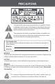 PRECAUTIONS The lightning flash with arrowhead symbol within an equilateral triangle is intended to alert the user to the presence of uninsulated “dangerous voltage” within the product’s enclosure that may be of sufficient magnitude to constitute a risk of electric shock. The exclamation point within an equilateral triangle is intended to alert the user to the presence of important operation and servicing instructions in the literature accompanying the appliance.