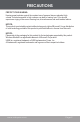 PRECAUTIONS The lightning flash with arrowhead symbol within an equilateral triangle is intended to alert the user to the presence of uninsulated “dangerous voltage” within the product’s enclosure that may be of sufficient magnitude to constitute a risk of electric shock. The exclamation point within an equilateral triangle is intended to alert the user to the presence of important operation and servicing instructions in the literature accompanying the appliance.