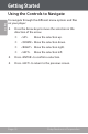 Getting Started Using the Controls to Navigate English To navigate through the different menu options and files on your player: Press the Arrow keys to move the selection in the direction of the arrow. Move the selection up. Move the selection down. Move the selection right. Move the selection left. Press to confirm a selection. Press to return to the previous screen.