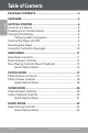Table of Contents Package Contents.........................................................4 Features............................................................................5 English Getting Started.............................................................6 Controls at a Glance . ..........................................................................6 Disabling the Controls (Hold)...........................................................8 Charging the Battery.....................................