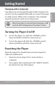 Getting Started Your player can be charged through a USB computer connection. Use the supplied USB cable to connect the player to a high-power USB port of a computer. The computer must be powered on and not in sleep mode. When the player is connected and charging, a USB symbol will be displayed on the player’s screen. Turning the Player On/Off To turn the player on, slide the switch down and hold it until the screen turns on.