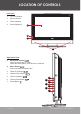 LOCATION OF CONTROLS Front View 1. TFT LCD Display 2. Remote Sensor 3. Power Indicator 4. Stereo Speakers 1 2 3 4 Right Panel View 1. Mode/Enter Button Press to change the TV mode. Within the Setup Menu, press to Enter a selection. 2. Menu Button Press to access the Setup Menu. 3. Channel Up Button 4. Channel Down Button 5. Volume Up Button 6. Volume Down Button 7.