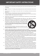 IMPORTANT SAFETY INSTRUCTIONS 1. Read Instructions: All the safety and operating instructions should be read before the product is operated. 2. Retain Instructions: The safety and operating instructions should be retained for future reference. 3. Heed Warnings: All warnings on the product and in the operating instructions should be adhered to. 4. Follow Instructions: All operating and usage instructions should be followed. 5. Cleaning: Unplug this product from the wall outlet before cleaning.