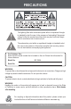 PRECAUTIONS The lightning flash with arrowhead symbol within an equilateral triangle is intended to alert the user to the presence of uninsulated “dangerous voltage” within the product’s enclosure that may be of sufficient magnitude to constitute a risk of electric shock. The exclamation point within an equilateral triangle is intended to alert the user to the presence of important operation and servicing instructions in the literature accompanying the appliance.