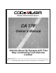 Remote Vehicle Control System CA 170 Owner's Manual Vehicle Security System with Two Way Confirming LCD Remote Control IMPORTANT NOTE: The operation of the Security and Convenience System as described in this manual is applicable to most vehicles. However, due to the configuration of some vehicles, some functions AND/OR SAFETY PRECAUTIONS may not apply. Please see your installing dealer for more information.