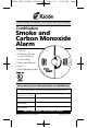 2508-7201-07(810-1512N):_ 2011.5.3 9:05 AM Page 1 User’s Guide for Models KN-COSM-I and KN-COSM-IB Combination Smoke and Carbon Monoxide Alarm • 120V AC • 9V Battery Backup (model KN-COSM-IB) • • • • 2-LED Display Peak Level Memory Hush® Voice Message System For questions concerning your Smoke and Carbon Monoxide Alarm, please call our Consumer Hotline at 1-800-880-6788. For your convenience, write down the following information.