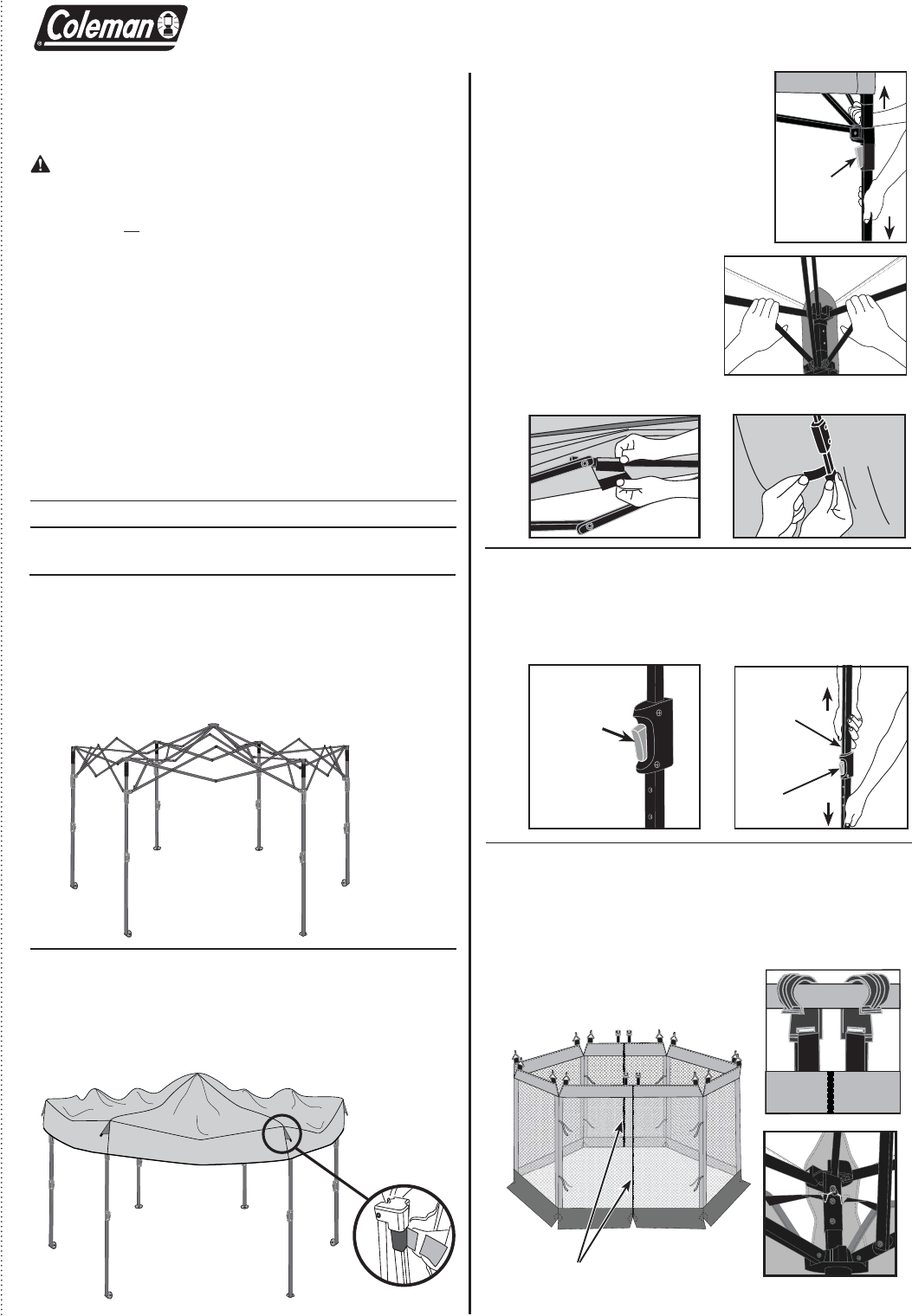 • Attach nylon fasteners, located on corners of shelter top, to six