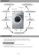 Schnellstart 1. Waschmaschine installieren 9. Taste Start / Pause drücken Bedienblende Waschmittelfach 2. Wäsche einfüllen 8. Gewünschtes Programm wählen Türöffner Waschtrommel 7. Anschlusskabel einstecken 3. Waschmittel einfüllen 4. Türe schließen 6. Wasserzulauf öffnen Wartungspanel Filterklappe 5. Abwasserschlauch einhängen Programmwahl 1. 2. 3. Drehen Sie den Programmwahlschalter um das gewünschte Programm zu wählen.