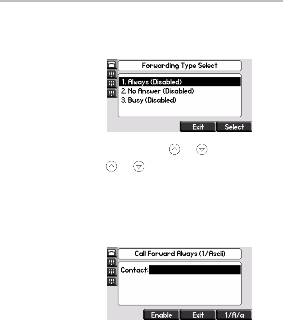 3. Using and , select the forwarding type you want to change,