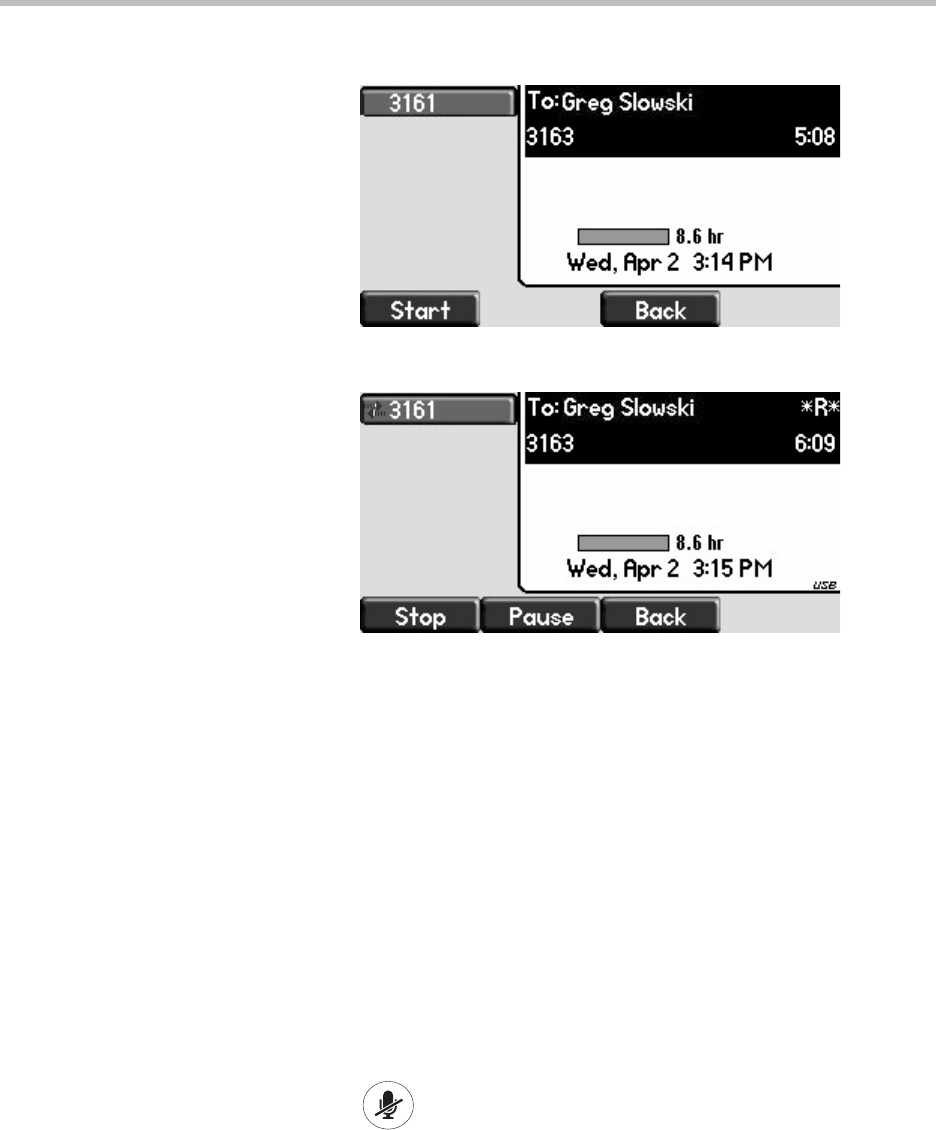 (using the More and Record soft keys) to again access the Stop and Pause