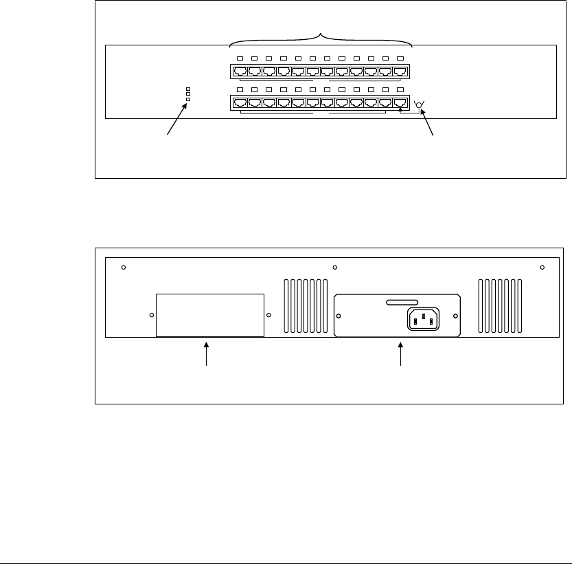 the LED indicators, RJ-45 ports, and uplink ports, and discusses the basic