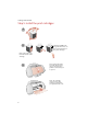 Getting Started Guide Step 5: Install the print cartridges 1 2 Warning: Do not touch the gold contact areas on the back and bottom of the print cartridges. Note: Remove the tape from the bottom of the cartridge. 3 First, push gently at the top of the front cover to release the latch, then pull the cover toward you to open it. Note: The cartridge carrier moves to the loading position when you open the front cover.