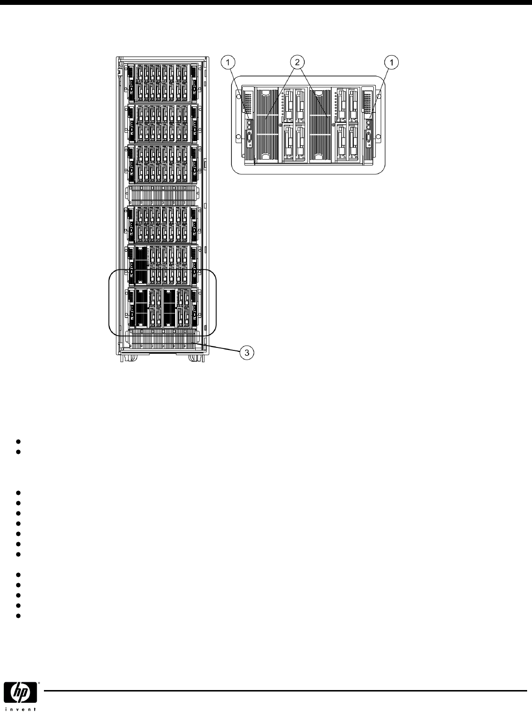 QuickSpecs HP ProLiant BL40p Server Blade Overview 42U Rack with ProLiant BL p-Class System Installed 1. BL p-Class Interconnects (2) in BL p-Class server blade enclosure (interconnect switch shown) 2. BL40p server blades (2) in BL p-Class server blade enclosure 3. BL p-Class power enclosure with hot-plug power supplies (6) What's New Intel® Xeon MP FC-PGA 2.8 GHz\2MB or 2.
