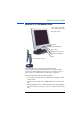Setting Up the Monitor To connect cables from your Comm Station to your monitor: 1 Make sure your monitor and your computer are turned off. 2 Plug the Comm Station’s power cable into the monitor at the back of the LCD panel, as shown in the following picture. 3 Connect the L-shaped end of Comm Station’s power cable, to the bottom of the Comm Station as shown below. 4 Attach the Comm Station’s power cable to the monitor’s DC adapter cable.