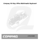 Getting Started Congratulations on your purchase of your new Compaq 134 Key Office Multimedia Keyboard. Package Contents • 134 Key Office Multimedia Keyboard • CD-ROM • User’s Manual • Warranty Information This device is supported with the following PC operating systems: Microsoft Windows XP Pro, Windows XP Home, and Windows 2000. Installing the Keyboard STEP 1 – Turn your computer off.