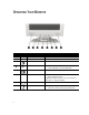 OPERATING YOUR MONITOR Front Panel Controls Reference Icon Name Function 1 Stereo speakers Provides audio from your computer 2 External headphone jack Disables the monitor speakers Adjustment Control buttons • • 4 Function Select button Launches the On-Screen Display (OSD) 5 Power LED Green light—indicates power on • Amber—indicates Sleep mode • No light indicates that the monitor is off. For more information on power states, see "Energy Saver Modes.