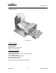 Operator Manual Step 4 Feed the paper over the bar behind the roll and under the spring loaded tension bar. Slide the paper through the guides. The paper will not feed until the machine is initialized (powered on). If the paper does not feed, make sure the paper is all the way in the loading guide. Also make sure the roller assembly is closed (see below) Step 5 The roller assembly can be opened by pressing down on the green lever in front of the printer.