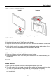 User’s Manual BEFORE YOU OPERATE THE MONITOR FEATURES • • • • • • 19” Wide screen TFT Color LCD Monitor Crisp, Clear Display for Windows Recommended Resolutions: 1440 X 900 @60Hz EPA ENERGY STAR® Ergonomic Design Space Saving, Compact Case Design CHECKING THE CONTENTS OF THE PACKAGE The product package should include the following items: LCD Monitor Screen Base Cables and User manual Power Cord VGA Cable Audio Cable User’s manual Warranty card DVI-D Cable (dual input mode optional) 8