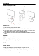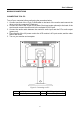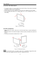 User’s Manual SCREEN HEIGHT ADJUSTMENT • • Press the button in (1) direction, the monitor may be adjusted to the desired height freely. Push the screen in (2) direction to lower the screen to its lowest position, the height will be fixed to that position and the button will lock automatically. Figure 3-3. Screen Height adjustment NOTES: • Do not touch the LCD screen with your hand when adjusting the viewing angle or rotating the LED screen, to prevent damaging or crushing the screen.