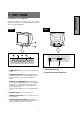 Control Names (22" Model) See figures below for the location of the user controls, indicator and connectors. REAR FRONT FRONT ENGLISH SIGNAL-A SIGNAL-B 1/2 3 SIGNAL-A SIGNAL-B 1/2 3 9 7. AC POWER CONNECTOR 1. POWER SWITCH: A push-on / push-off switch for AC power. 8. SIGNAL INPUT CONNECTOR (SIGNAL A):DB9-15P 2. POWER-ON INDICATOR: This indicator illuminates green when AC power is on, and illuminates amber when the monitor is in the power management modes. 9.