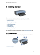 HP Deskjet 6800 series printer 3 Getting started For an overview of the printer features, see the printer features page. Click the appropriate topic below for a description of a printer feature: • Buttons and lights • Print Cartridge Status lights • Paper trays • Photo/envelope feeder • Print cartridges • Ink-backup mode • Automatic Paper Type Sensor • PictBridge port For a description of the optional accessories, see the optional accessories page. 3.