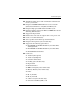 Specifications Table 6-8 System Interrupts (Continued) Hardware IRQ System Function IRQ12 Synaptics PS/2 port pointing device IRQ13 Numeric data processor IRQ14 Primary IDE channel IRQ15 Secondary IDE channel IRQ17 Conexant AC -Link Audio IRQ17 Soft V90 Data Fax Modem with SmartCP IRQ17 ATi Mobility Radeon Xpress 200 Series IRQ19 Standard Enhanced PCI to USB Host Controller IRQ19 Standard OpenHCD USB Host Controller IRQ19 Standard OpenHCD USB Host Controller IRQ20 TI 6411 PCIxx21/x51