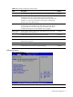 Table 4 Advanced menu fields Field Description CPU Configuration You can use this screen to select options for the CPU Configuration Settings. Use the up and down keys to select an item. Use the and keys to change the value of the selected option. A description of the selected item appears on the right side of the screen. The settings are described on the following pages. IDE Configuration You can use this screen to select options for the IDE Configuration Settings.