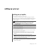 finding answers to commonly asked questions In this User’s Guide, you can find answers to questions about the following topics: • Connecting to the Internet, page 35 • Registering your product, page 11 • Creating a CD, page 59 Saving documents, photos, and videos on a CD, page 61 Recording a music CD, page 60 Copying a CD, page 59 Backing up your files to a CD, page 61 • • • • • • • • • Watching movies on your PC, page 57 Connecting to a TV, page 63 Getting digital pictures onto your PC, page 50 Connecti